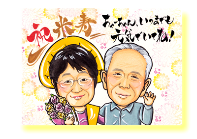 母の米寿のお祝いに送りました。9年前に亡くなった父とのツーショットを描いて欲しくて、父の写真を一緒に送り実現しました。 優しくほっこりする絵のタッチで、父と母が手を取り合う絵柄に母も大変喜んていました。ありがとうございました。思ったよりも早く納品してもらい安心しました。 また、ホームページで詳しく説明されてるので不安はありませんでした。