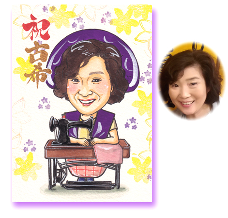 スポーツのユニフォームから好きなアニメのキャラクターまでお好きな衣装で似顔絵を作成いたします。