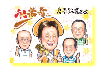 ホームページに掲載してある、実際にお願いした方の実例や感想等の声がとても参考になり決め手となりました!祖父の米寿祝いのため似顔絵をお願いしました。しっかりと特徴を捉えてくれており、とても温かみのある素敵な絵でした。祖父も喜んでくれて、こちらでお願いして本当に良かったです。
