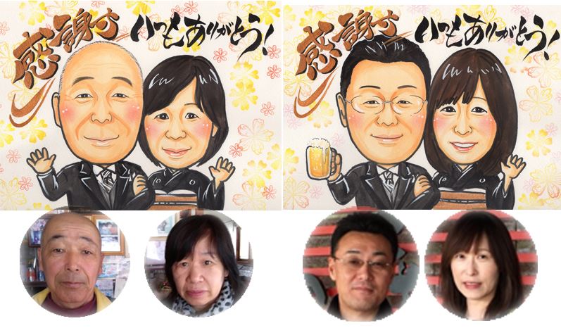 ご両親への感謝の気持ちを心温まる手描きの似顔絵に