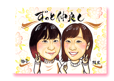 | とても良く出来ていました。両親の金婚式に贈る似顔絵を依頼したのですが、「両親に打掛と紋付袴を着せたイラストに仕上げて欲しい」というリクエストにも応えていただき、両親も「一生の記念になる」と喜んでいました。温かいお祝いの席に、花を添えていただき、感謝しています。